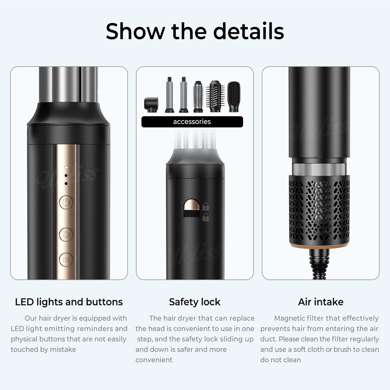 Product introduction:We specialized at designing and manufacturing beauty hair tools over 8 years- electrical hair straighteners flat irons, auto hair curlers, curling wands, curling irons, hair crimper and hair dryers. Our hair styling tools meet ETL/CS/TUV-GS/CE/RoHS/CB/CCC/SAA/FCC. We control the quality strictly from original materials to finished products to ensure the whole production lines be under strict supervision, each product including the packaging and accessories is inspected before shipment, to ensure that no sub-standard products ever leave our factory. If we source components from third-party manufacturers, we only order from experienced and proven suppliers, who conform to the high standard of manufacturing that our clients expect. We inspect incoming inspections in order to ensure that the quality of the components in every shipment remains consistent. With advanced equipment and abundant experience to do custom hair tools projects, our products are sold throughout the country and exported to as far as Europe, Middle East, Africa, South America, North America and other 30 countries and regions, in both the professional hair salon and retail distribution markets and online sellers. We offer a one-stop OEM/ODM solution - design, mold, brand/private label, packaging, dropshipping. Customize Hair Straighteners: Plate materials: Tourmaline, Tourmaline Coating, Titanium, Aluminum, Titanium Ceramic Coating, etc. Plate size: 1/2 inch (0.5 inch), 1 inch, 1.25 inch, 1.5 inch, 1.75 inch, 2 inch and customized size. Temperature display: LCD display/dial Knob/ LED display Customized Curling Irons: Barrel materials: Titanium, Tourmaline, Aluminum, Ceramic Coating, etc. Barrel size: 9mm, 11mm, 13mm, 16mm, 19mm, 22 mm, 25mm, 32mm, 38mm, and other customized sizes. Temperature display: LED display/LCD display/dial Knob, etc Customized box for hair tools: Color box, PVC box, blister box, gift box, magnetic box, etc for optional. Our own R&D team and insists on constant innovation. If you need to customize private label on the iron or customize your own design, please send your logo/design file to our sales, our sales will pass your requirements to our engineer and will have a nice done for you. Also the final files from us will be sent to you for check and confirm before production. All the orders are made in a highly efficient way from samples to mass production. We will finish the sample orders in 2-3 working days and the bulk orders in 20 - 25 days. And we will refund the sample cost to our customer if the samples approved and the customer place the bulk order. Contact us today for a free consultation on how to start your order and production in China with a reliable partner!